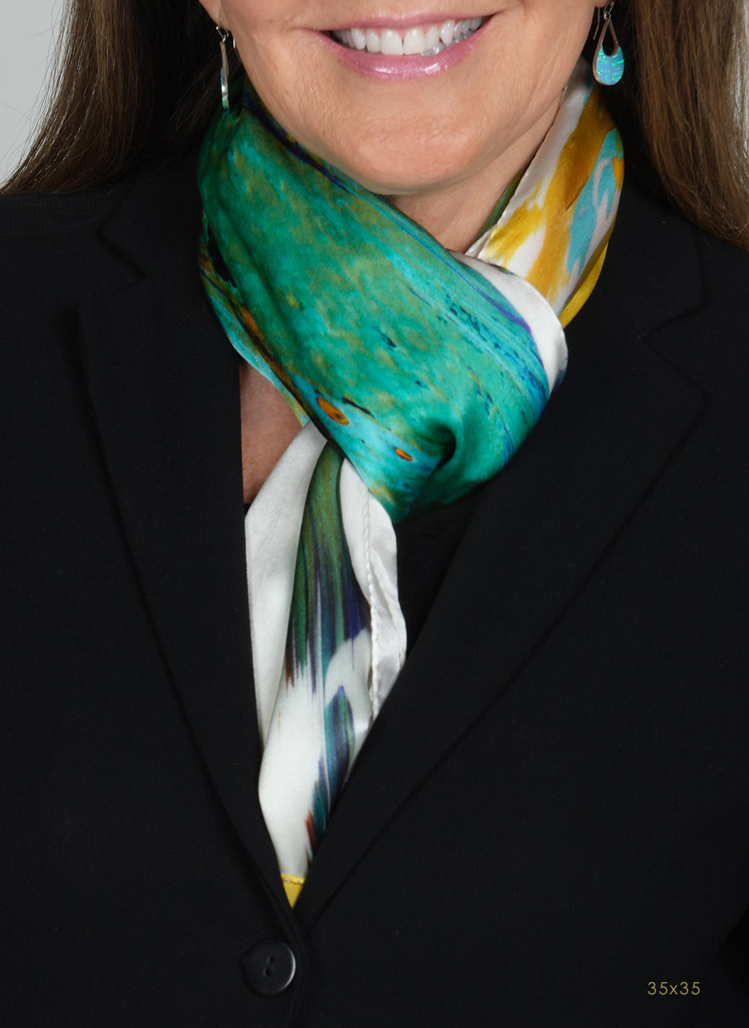 - 35"x35" and 19"x69" sizes may vary due to the finishing of the silk and hand-rolled edges